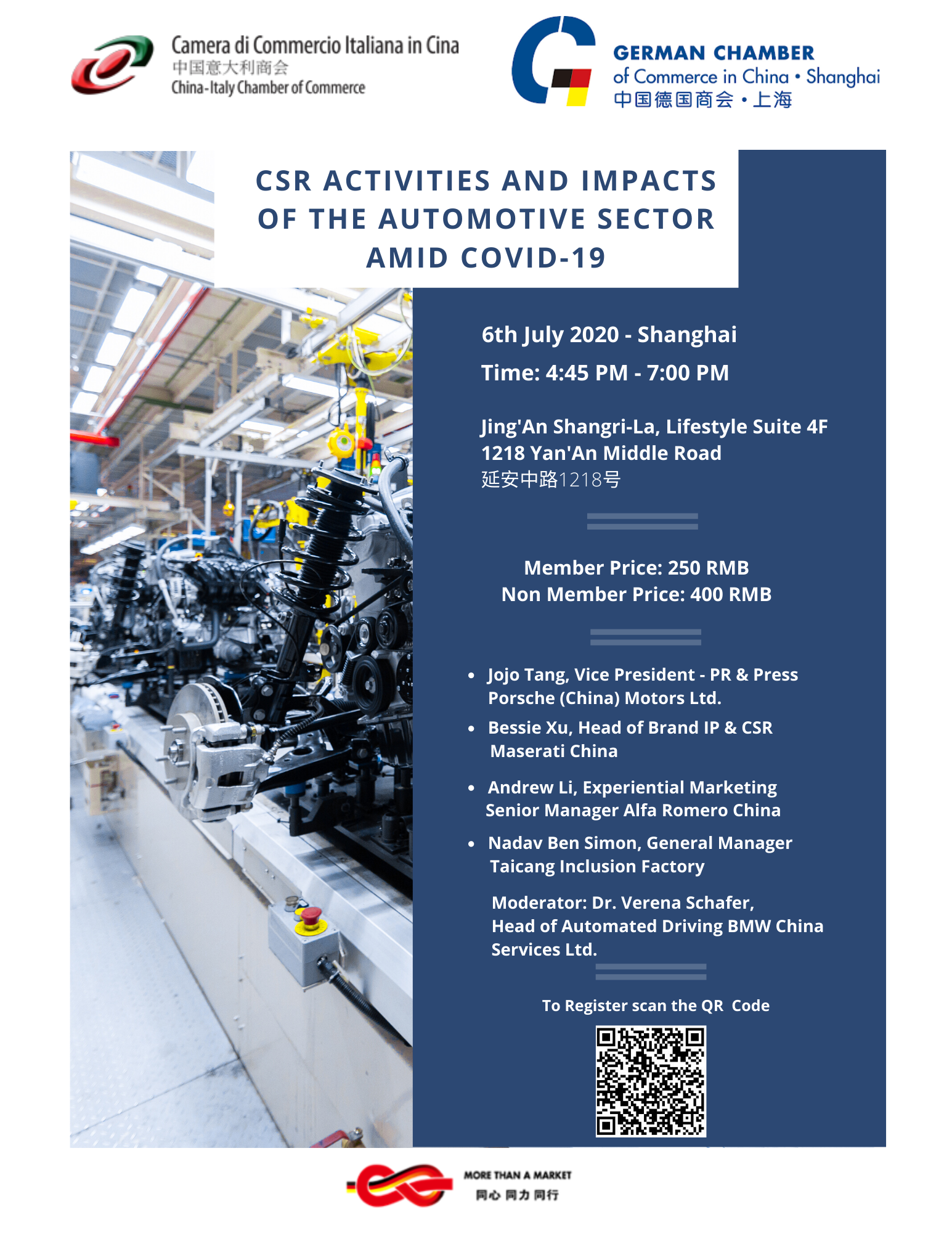 The China-Italy Chamber of Commerce, in partnership with the German Chamber of Commerce in China | Shanghai, is inviting industry and professionals from multinational automotive enterprises to share their insights on how CSR efforts of the automotive businesses are evolving in light of the pandemic.