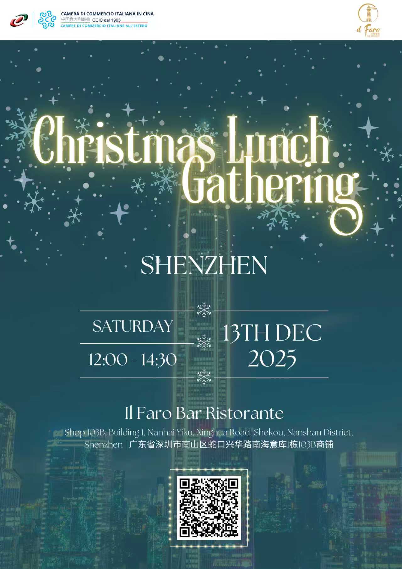 The China-Italy Chamber of Commerce (CICC) is pleased to invite you to attend our Christmas Lunch Gathering which will be held on 13th December 2025 at Il Faro Bar Ristorante in Shenzhen.