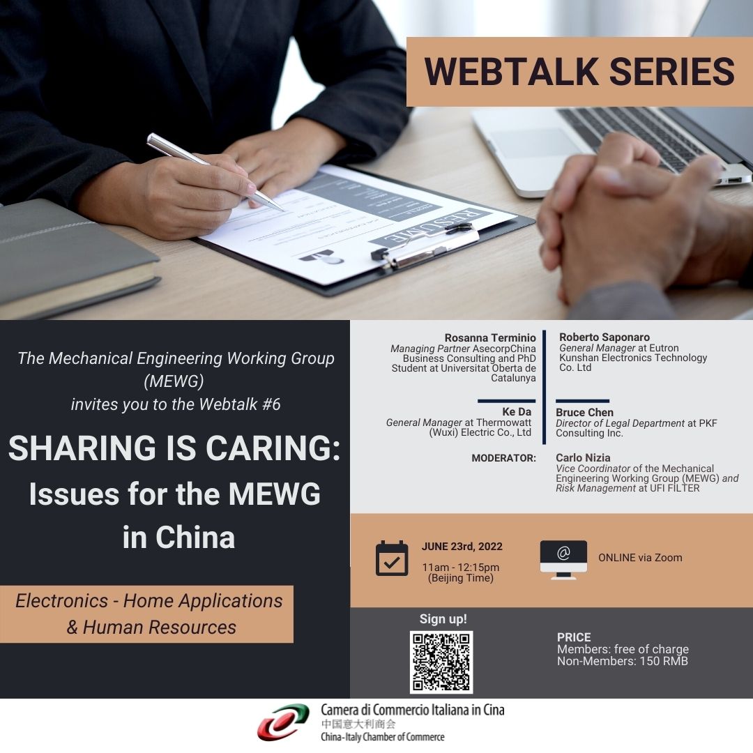 "Sharing Is Caring" is the webinar series launched by the China-Italy Chamber of Commerce (CICC) together with our Mechanical Engineering Working Group (MEWG).