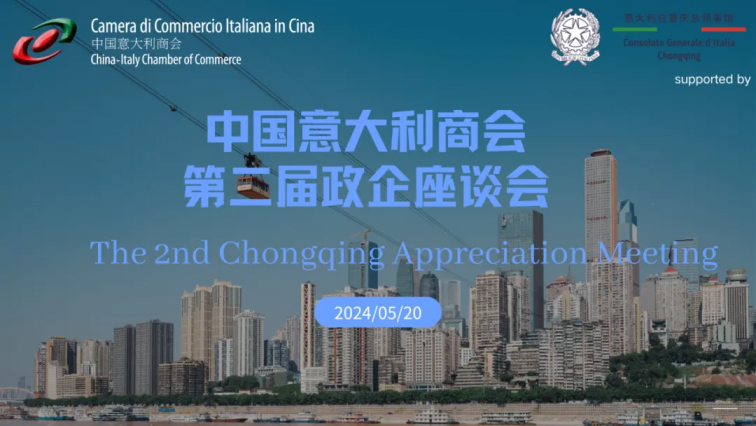 5月20日,中国意大利商会在意大利驻渝领事馆的支持下,举办了第二届政企座谈会。参与会议的有:意大利驻重庆总领事施启帆先生,中国意大利商会副会长保罗·巴颂尼先生, 四家在渝投资企业代表,重庆市经信委,市商务委、两江新区管委会的相关职能部门,还有重庆悦来投资集团的代表。