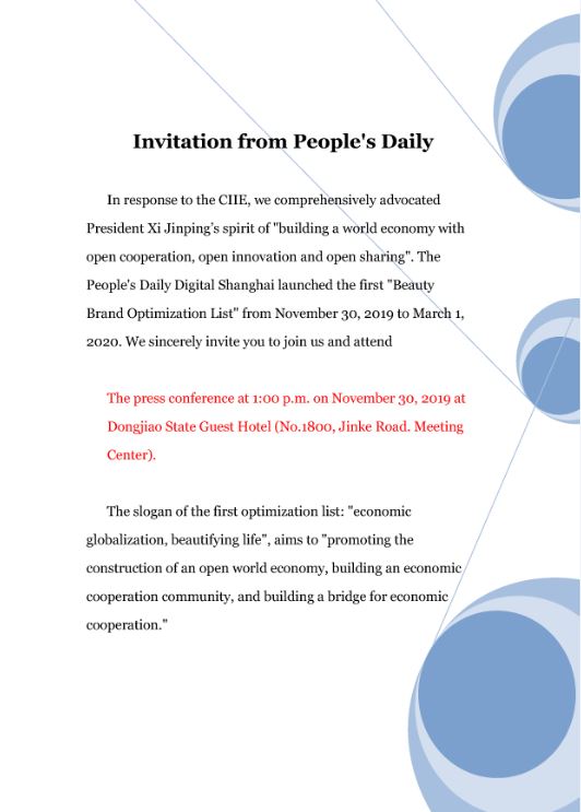 The China-Italy Chamber of Commerce is glad to inform you that People’s Daily Digital Shanghai launched the first “Beauty Brand Optimization List” from November 30, 2019 to March 1, 2020.