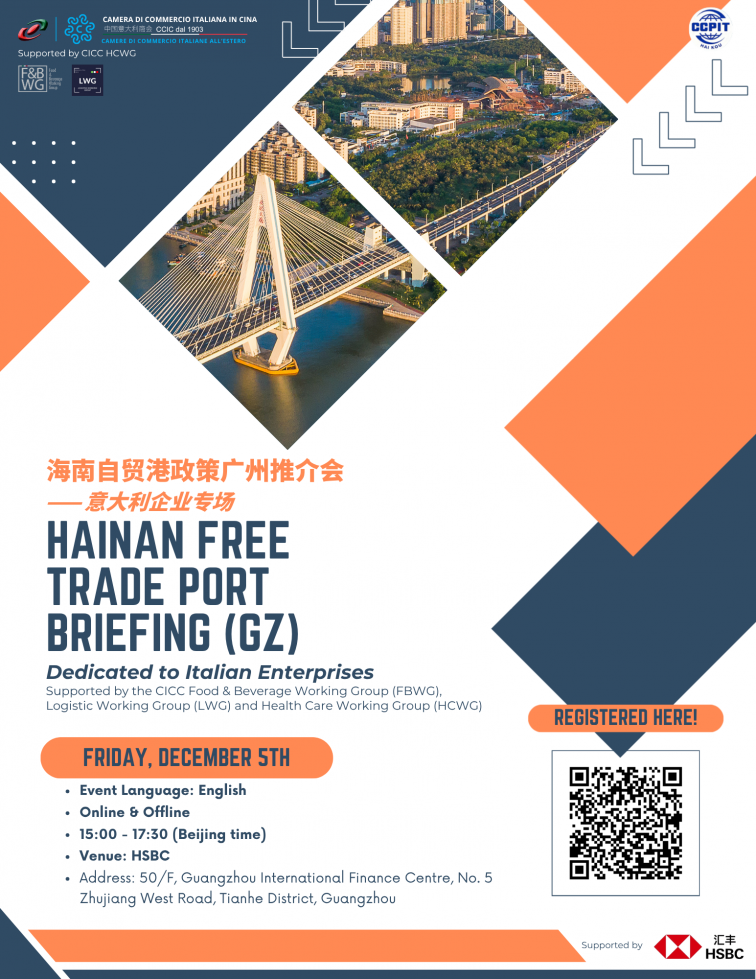 The China-Italy Chamber of Commerce (CICC) announced a special Hainan Free Trade Port Briefing for Italian Business which took place on 5th December in Guangzhou.
