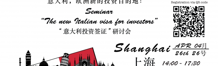 SAVE THE DATE! April 26th, Shanghai - “Invest in Italy: new Italian visa for investors” Seminar