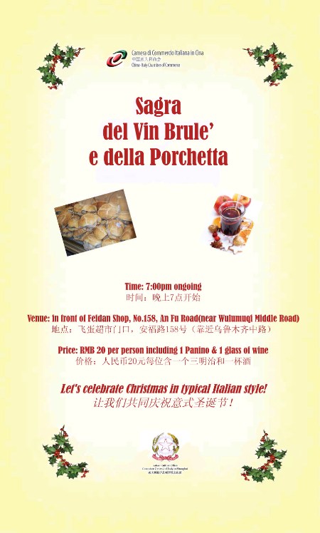 The Board of Directors of China-Italy Chamber of Commerce in Shanghai, the Italian Culture Office, have the pleasure to invite our members and friends to celebrate the coming Christmas, hosting a Christmas Festival in the most typical Italian style.