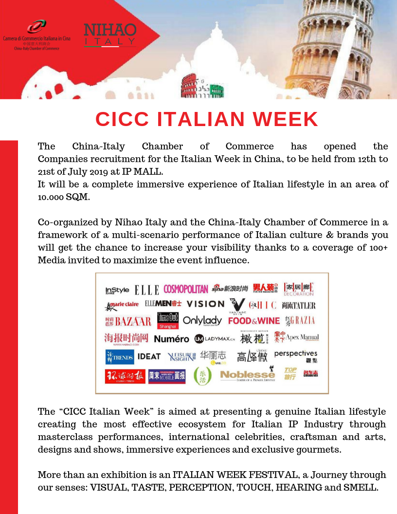 CICC Italian Week, 12 - 21 July 2019, Shanghai