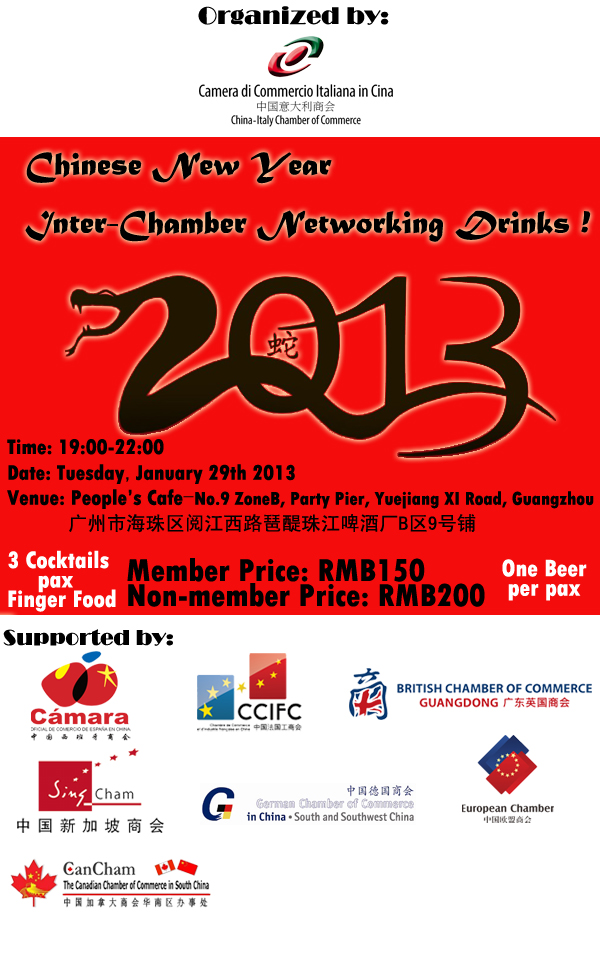 The China - Italy Chamber of Commerce together with other fourteen binational Chambers is delighted to invite you to the first networking event of the year of the Snake.