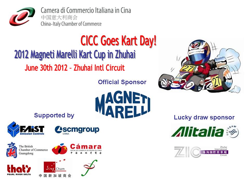 The China-Italy Chamber of Commerce is glad to invite you to attend the CICC Goes Kart – Second Magneti Marelli Kart Cup in Zhuhai, to be held on June 30th 2012 at the Zhuhai International Circuit (ZIC).