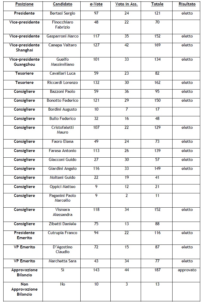 Ringraziando i presenti all’Assemblea Generale Elettiva di oggi, Venerdì 8 Aprile 2016, e quanti hanno espresso anticipatamente le proprie preferenze mediante il voto elettronico, riportiamo l’esito delle elezioni.