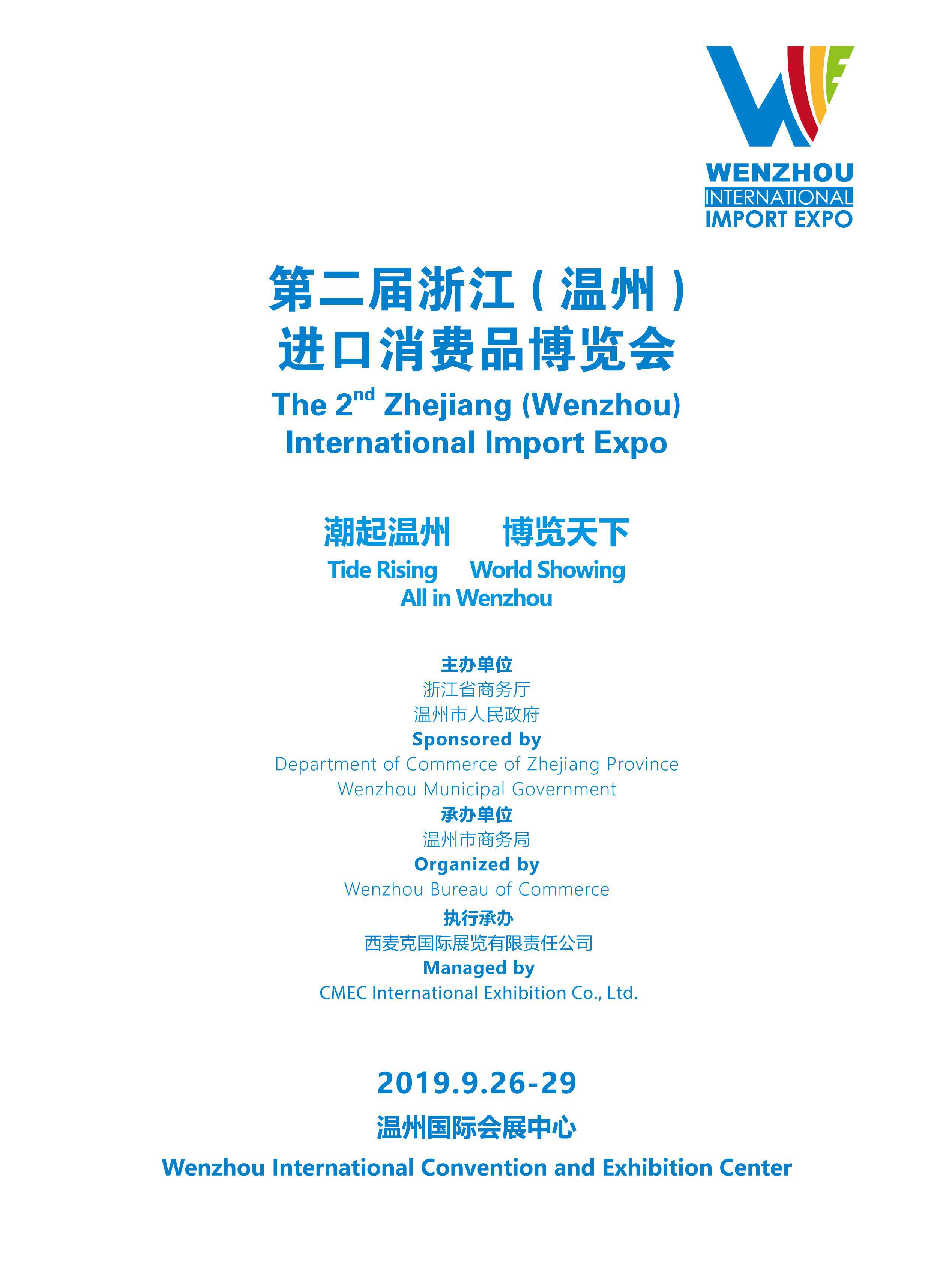 2nd Zhejiang (Wenzhou) International Import Expo, 26-29 September 2019, Wenzhou