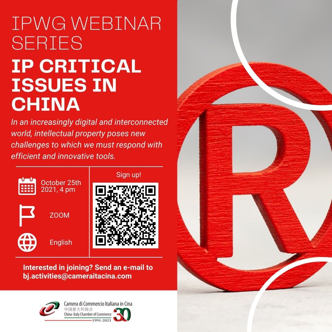 The China-Italy Chamber of Commerce is glad to invite you to the webinar organized by our Intellectual Property Working Group (IPWG) on October 25th, 2021, at 4:00 pm.