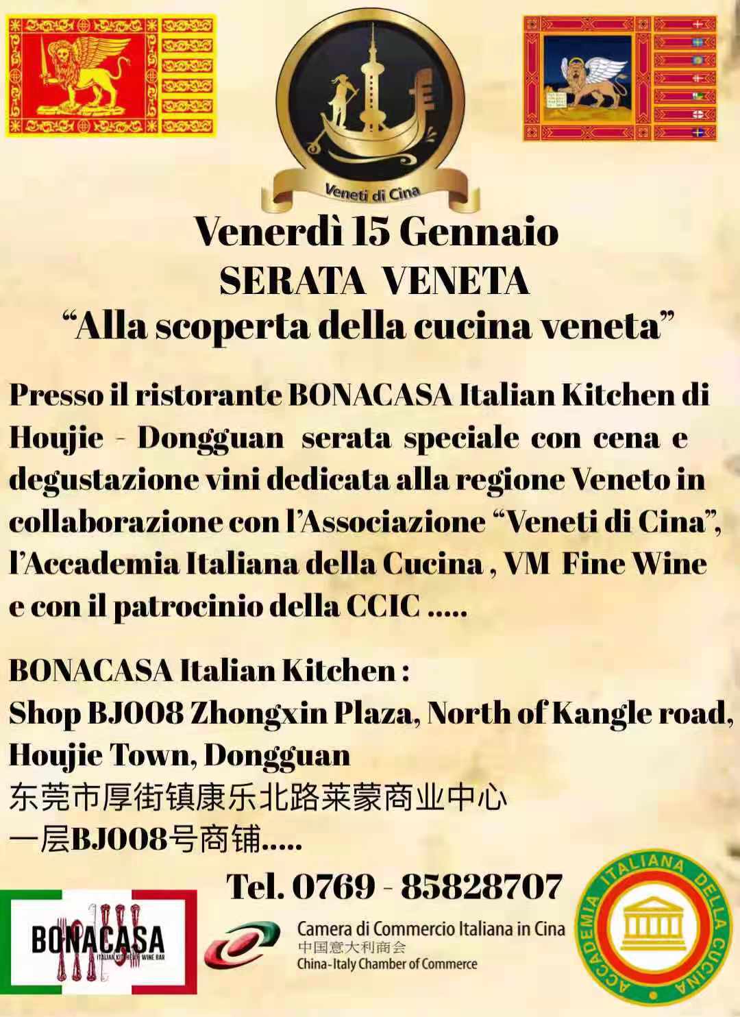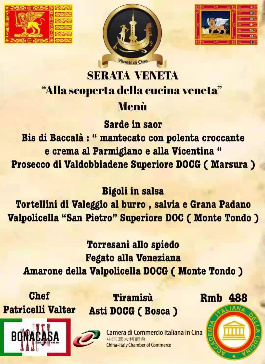 The China-Italy Chamber of Commerce (CICC) is glad to invite you to the Venetian Evening "Discovering Venetian Cuisine" which will be held on 15th January 2021 in Dongguan.