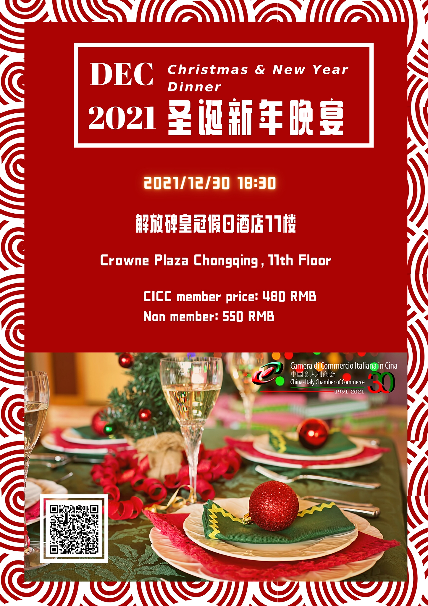 The China-Italy Chamber of Commerce (CICC) is pleased to invite you to our Christmas and New Year Dinner taking place in Chongqing.