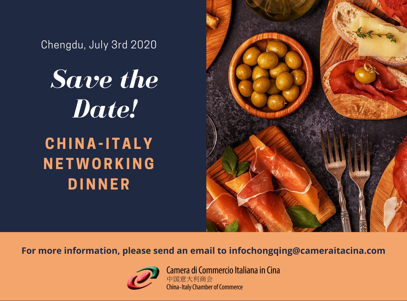 The China-Italy Chamber of Commerce (CICC) is glad to inform you that our China Italy Networking Dinner will be held on Friday, July 3rd in Chengdu, at Bucciano Italian Restaurant starting from 7:00 pm.
