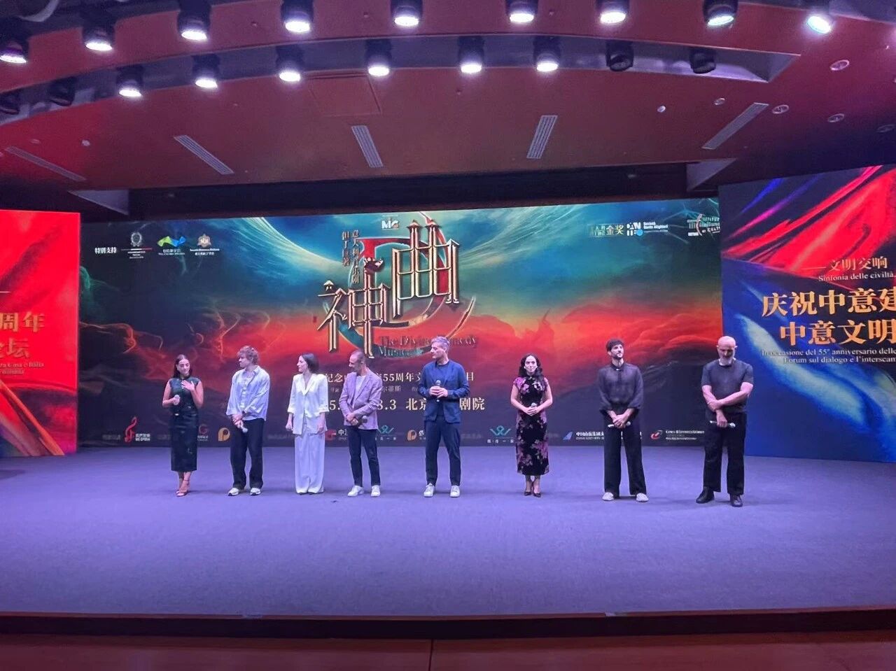 The event was held in celebration of the 55th anniversary of diplomatic relations between China and Italy and was preceeded by a thematic forum titled “Literature and Stage: Contemporary Paths of Interaction between Chinese and Italian Civilizations.” The forum was jointly organized by the China Arts and Entertainment Group (CAEG), the Embassy of Italy to the P.R.C., and the Committee for Culture and Peace of the Charhar Institute. It brought together representatives from the cultural, artistic, academic, and diplomatic spheres of both countries for a dialogue on the modern interpretation of literary classics and cross-cultural artistic exchange.