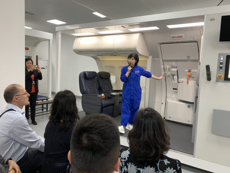 After a brief visit in the Headquarters Building, the Event continued in the Training Center of CSAir, where all the participants experienced different situations that might happen during the flight in the simulation capsule, and learned skills of security to protect themselves when there’s emergency.
