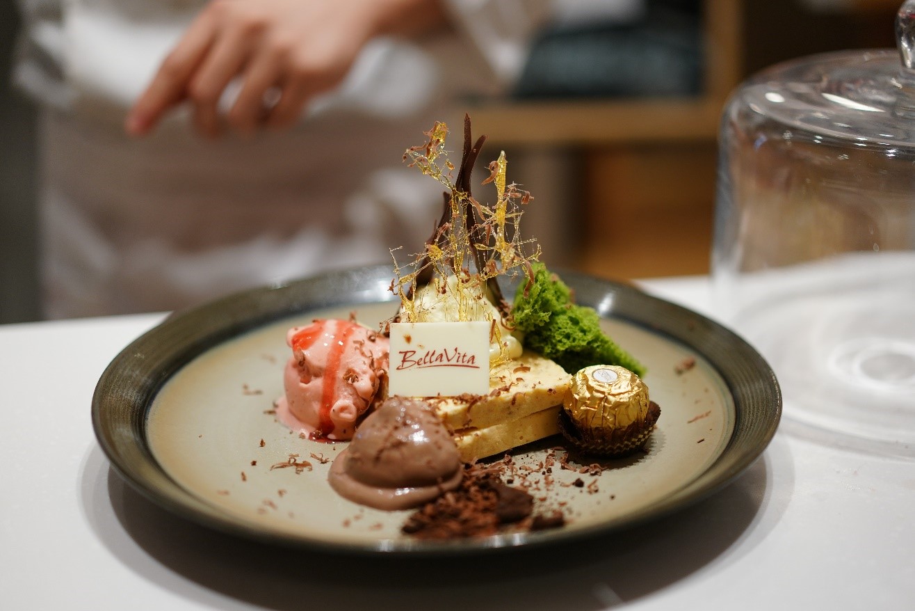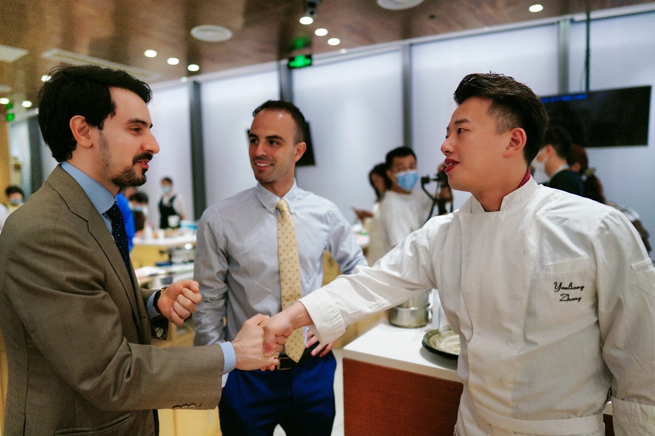 Afterwards, the real Masterclass began. The Masterchef from Bellavita of Foshan, Mr Giulio Zhang, shared the inspiration and idea of the dish “Fuoco Freddo”. Then he showed how to prepare the dish step by step, and the attendees followed the recipe acting on his instruction.