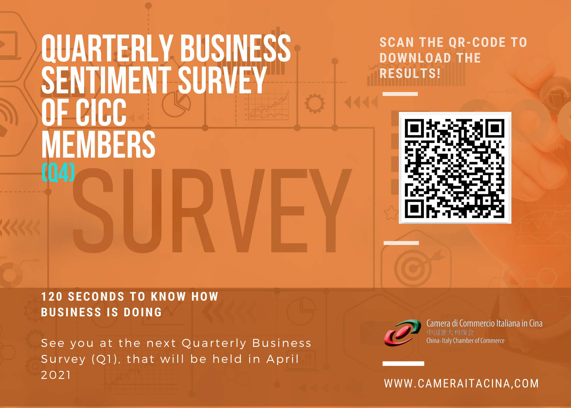 The CICC thanks all 200 companies for taking part in the Survey, helping to create added value and providing the tools to improve concrete support for the Italian business community in China. The next quarterly business sentiment survey will be held on April 2021.
